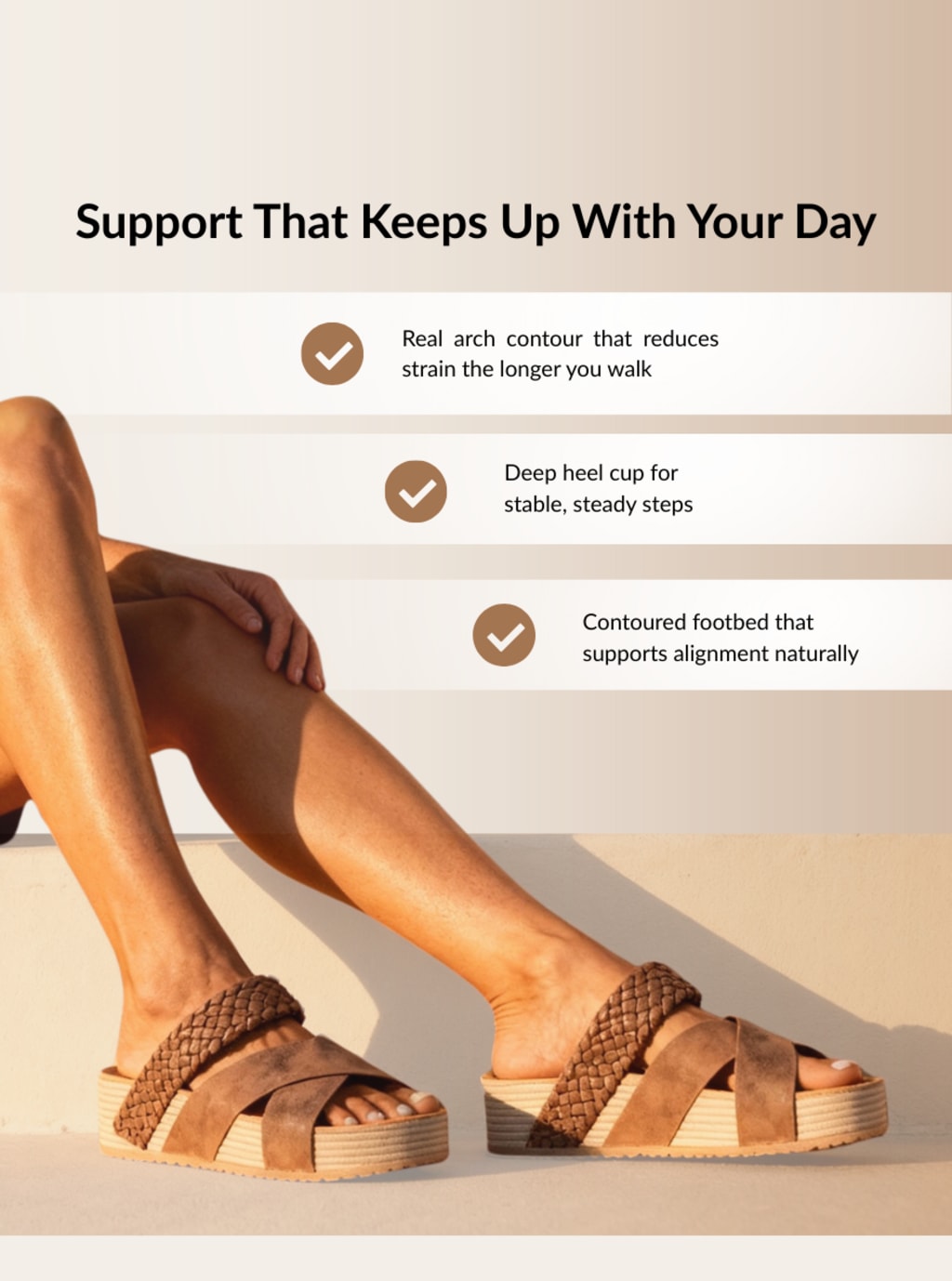 A gently contoured footbed that supports your natural stride, giving you a stable, grounded feel wherever the day takes you.