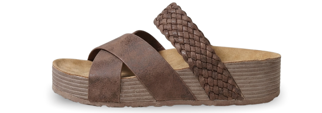 Stylish, comfy, and durable. The vegan leather straps are so soft, and the sole grips beautifully.
